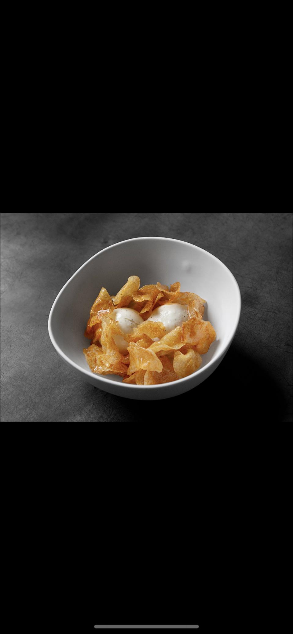Honey Butter Chips: We wanted customers to feel as many different sensations as possible in one bite. Chips get seasoned with salt and cayenne and glazed with honey butter emulsion. We serve this with scoops of vanilla ice cream, giving hot, cold, savory, salty, buttery, and sweet at the same time.